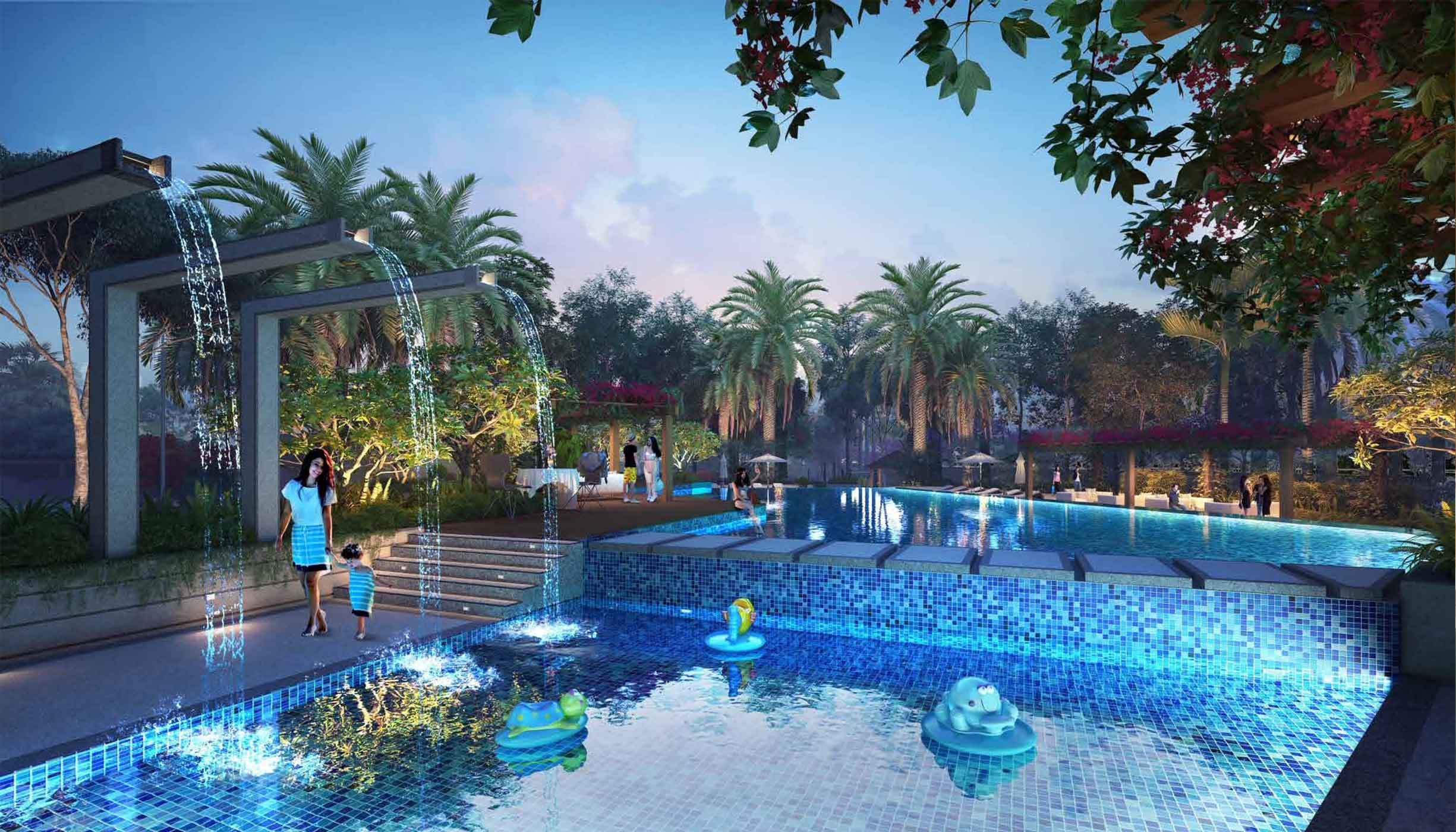 • Open Space: Over 75% of the land dedicated to greenery, landscaping, and water features